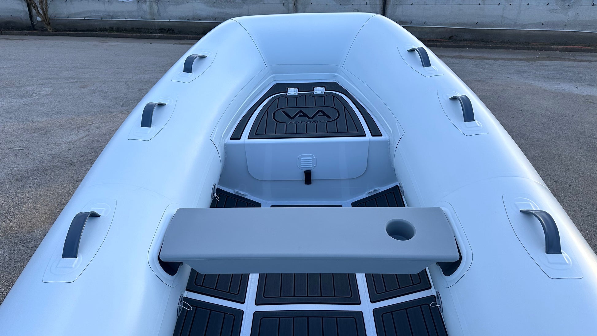 The new Aqvaboats Tenders offer maximum comfort, have an aluminum V-hull, double bottom and bow locker. The hulls are built in marine aluminum with a thickness of 2.5mm, treated in phosphate and acid baths and then powder coated and put in the oven. This makes them resistant to corrosion and salt water. Thanks to the very light aluminum hull, the Aqvaboats models are able to reach high speeds and plan easily even with a small displacement engine . The fabric used to make the tubes is ORCA 828 - 1100 Dtex neoprene. The full-length keel protection ensures greater protection. Luxrib tenders are equipped with four lifting rings.