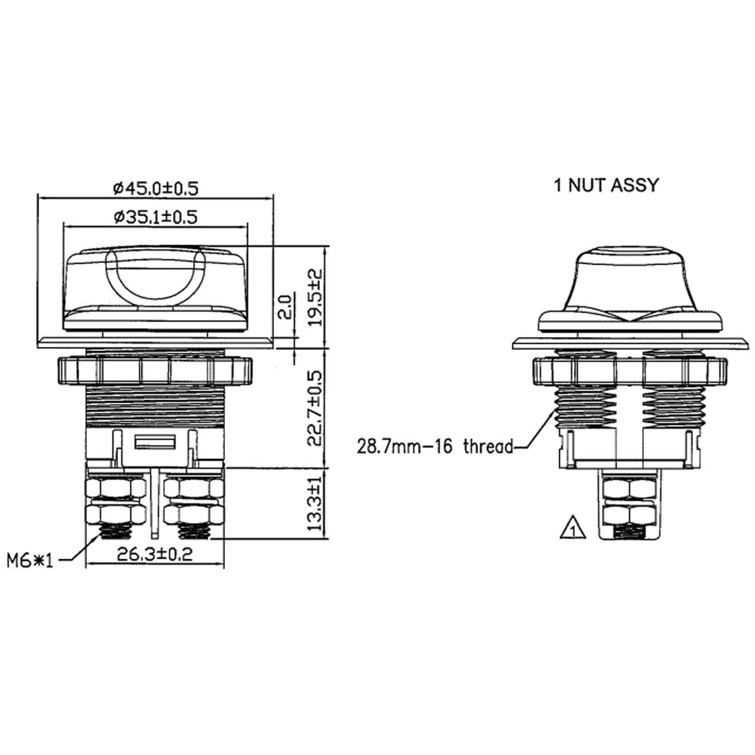 Practical battery disconnect switch for interrupting and restoring power to your boat. The switch is suitable for voltages from 12-32 V and has a continuous load capacity of 100 A. The housing is made of sturdy plastic and the nuts are made of rust-proof and corrosion-resistant brass, ideal for use on board. OUT position which allows the knob to be removed as an anti-theft device.