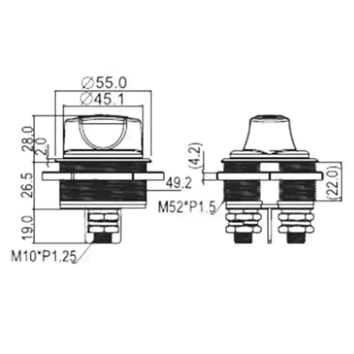 • Dimensioni : Flangia ø 55mm - Collo ø 49mm