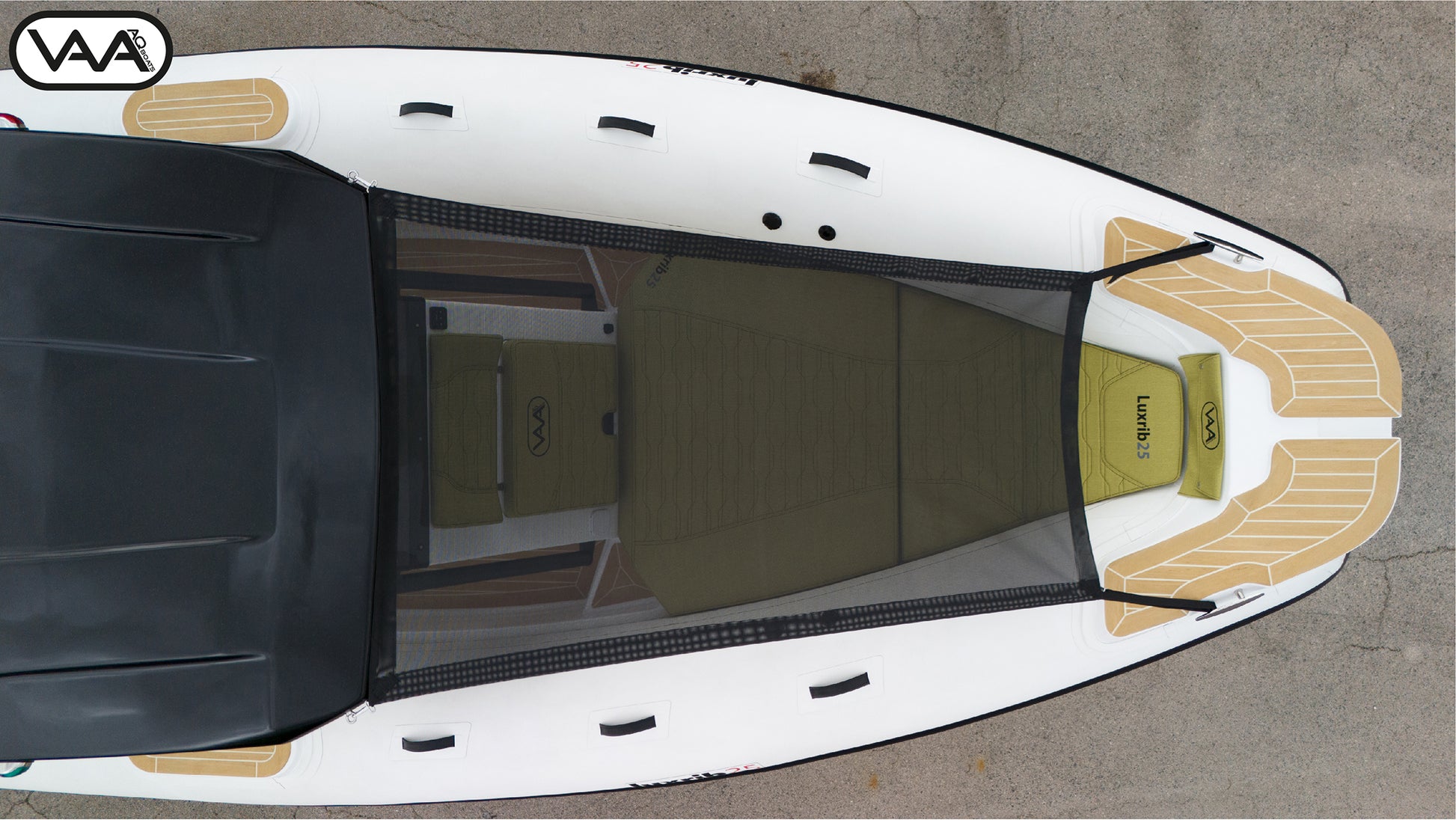 Carena a laminazione ad infusione con geometria variabile: Questa innovativa progettazione consente al Luxrib25 di adattarsi perfettamente a diverse condizioni di navigazione, offrendo un’esperienza fluida e confortevole sia in acque calme che in condizioni di mare mosso.