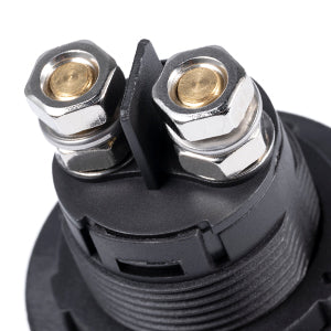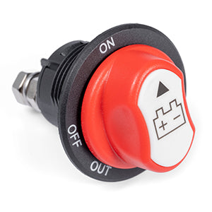 Pratico staccabatteria per interrompere e ripristinare l'alimentazione della barca. L'interruttore è adatto a tensioni da 12-32 V e ha una capacità di carico continuo di 100 A. L'alloggiamento è realizzato in plastica robusta e i dadi sono in ottone antiruggine e anticorrosione, ideali per l'uso a bordo. Posizione OUT che permette di sfilare il pomello come antifurto.