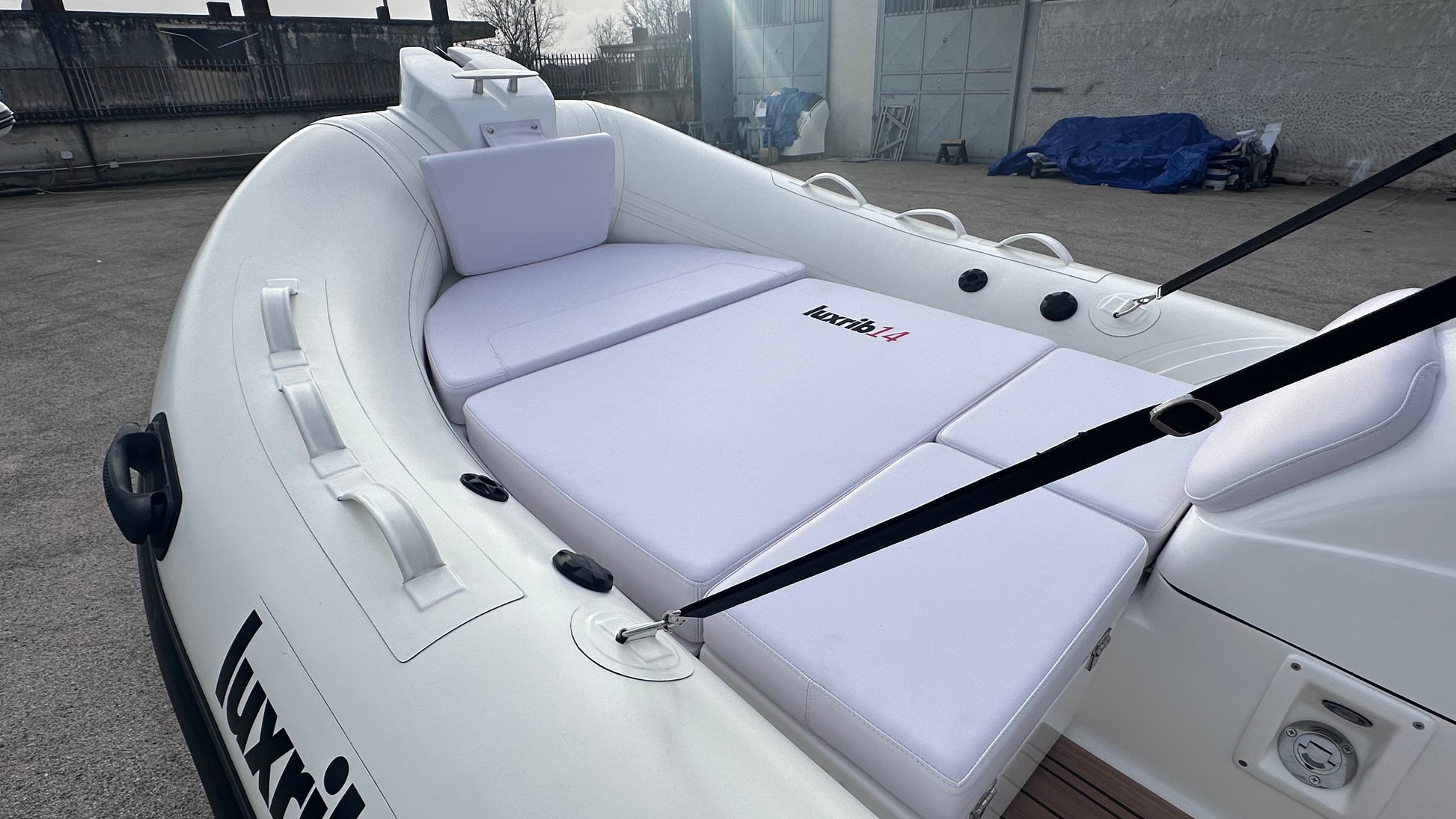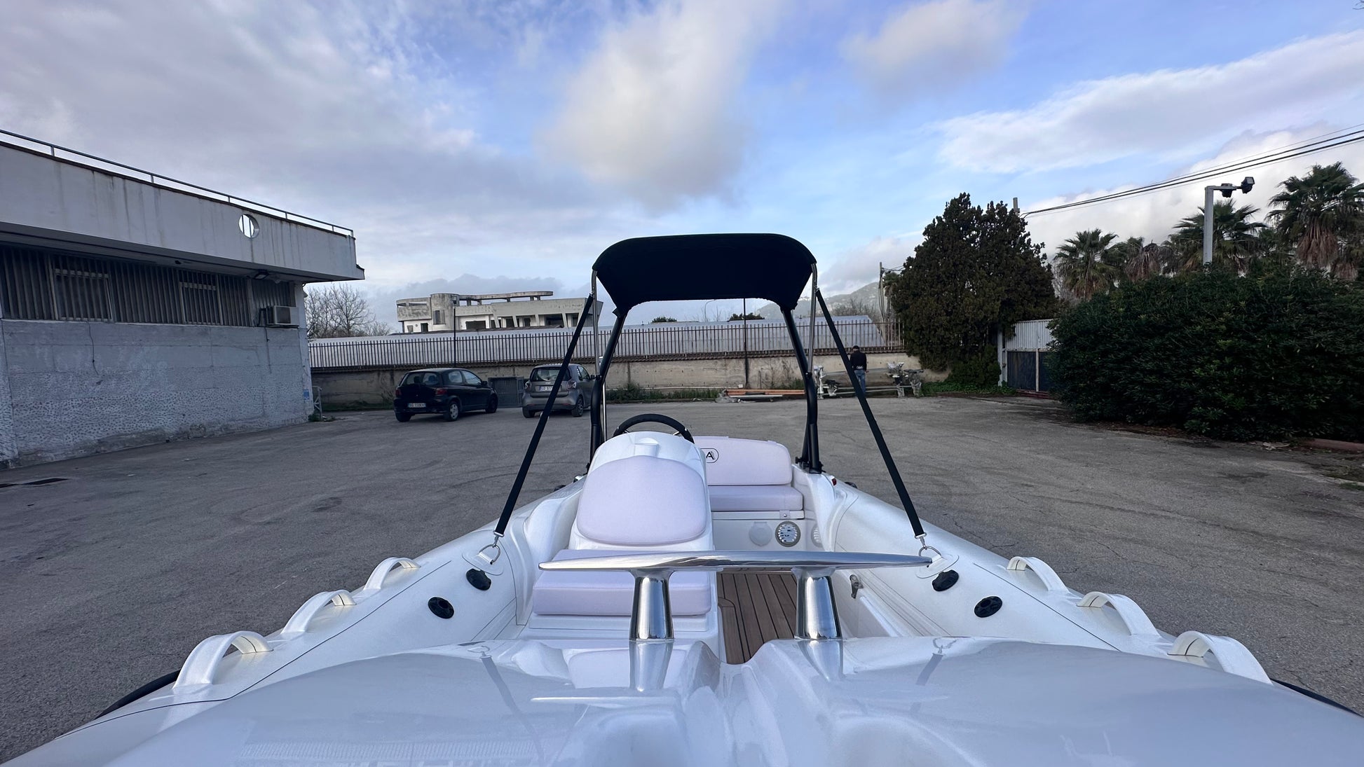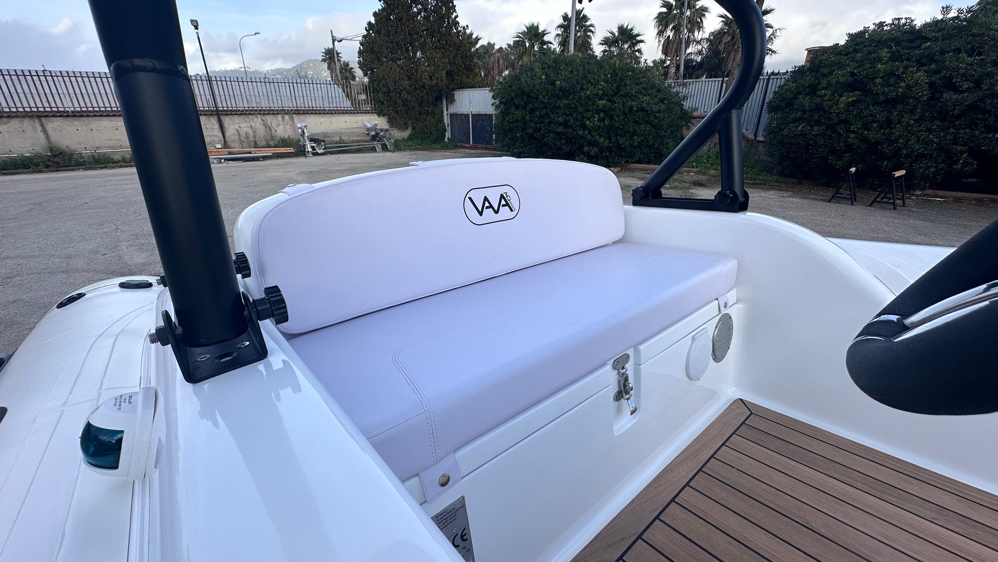 - Seduta di poppa con schienale e gavone con supporto idraulico